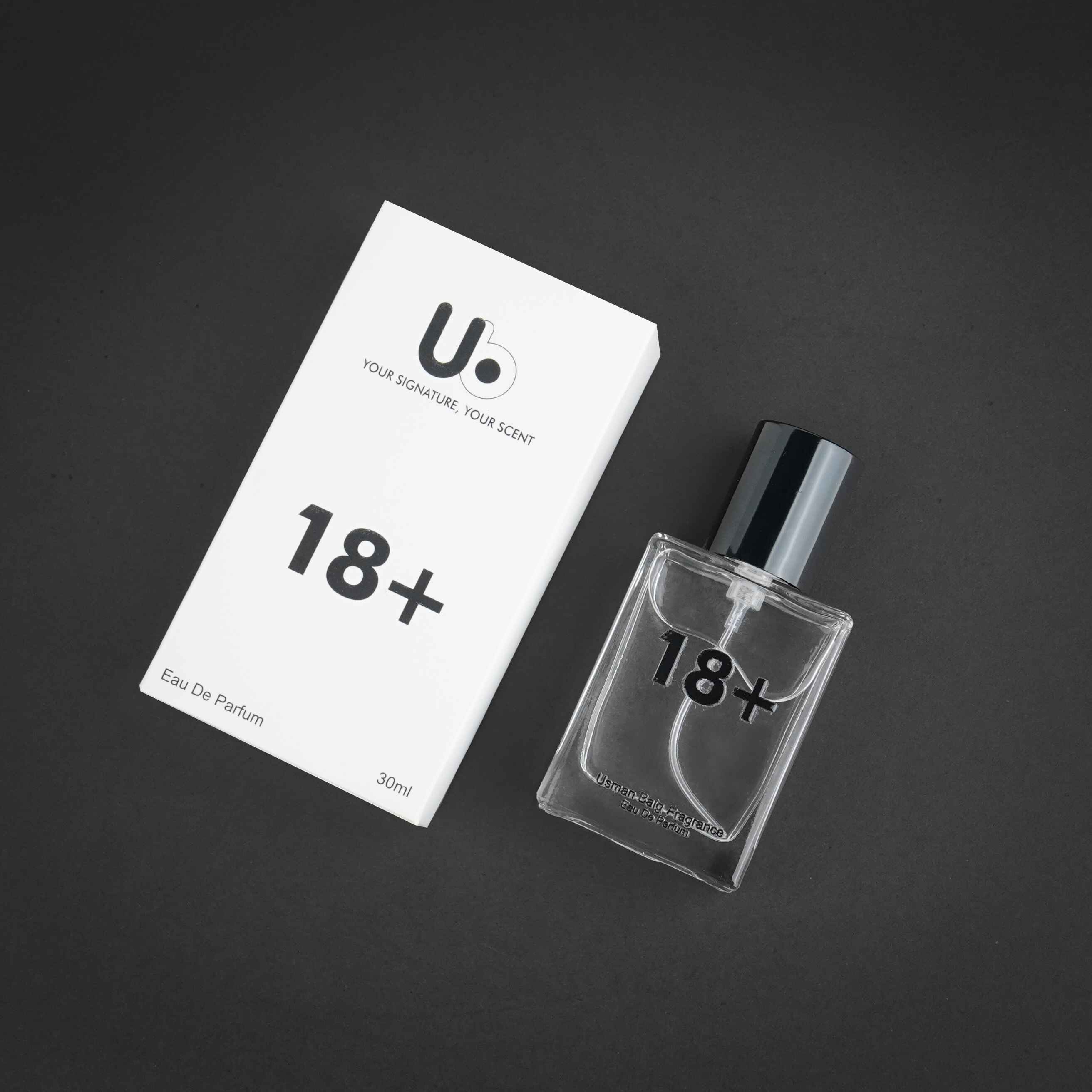 18+ by UB Fragrance One is a fresh, woody, spicy, designed for youngsters, featuring prominent notes of Bergamot, and Woods, powdery with floral hints (Jasmine) , Musk, and Patchouli, creating a confident, long-lasting aroma perfect for daily professional wear, transitioning from desk to dinner. It opens bright and fresh, develops a smooth heart, and settles into a deep, charismatic woody base, making it a versatile, sophisticated signature scent.